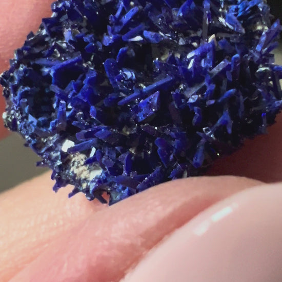 Azurite is treasured for its deep royal blue color and its connection to intuition and spiritual wisdom. Collectors prize pieces with rich color and sharp crystal formations. Because it's a softer stone that must be handled with care, high-quality specimens are rare and especially valued.