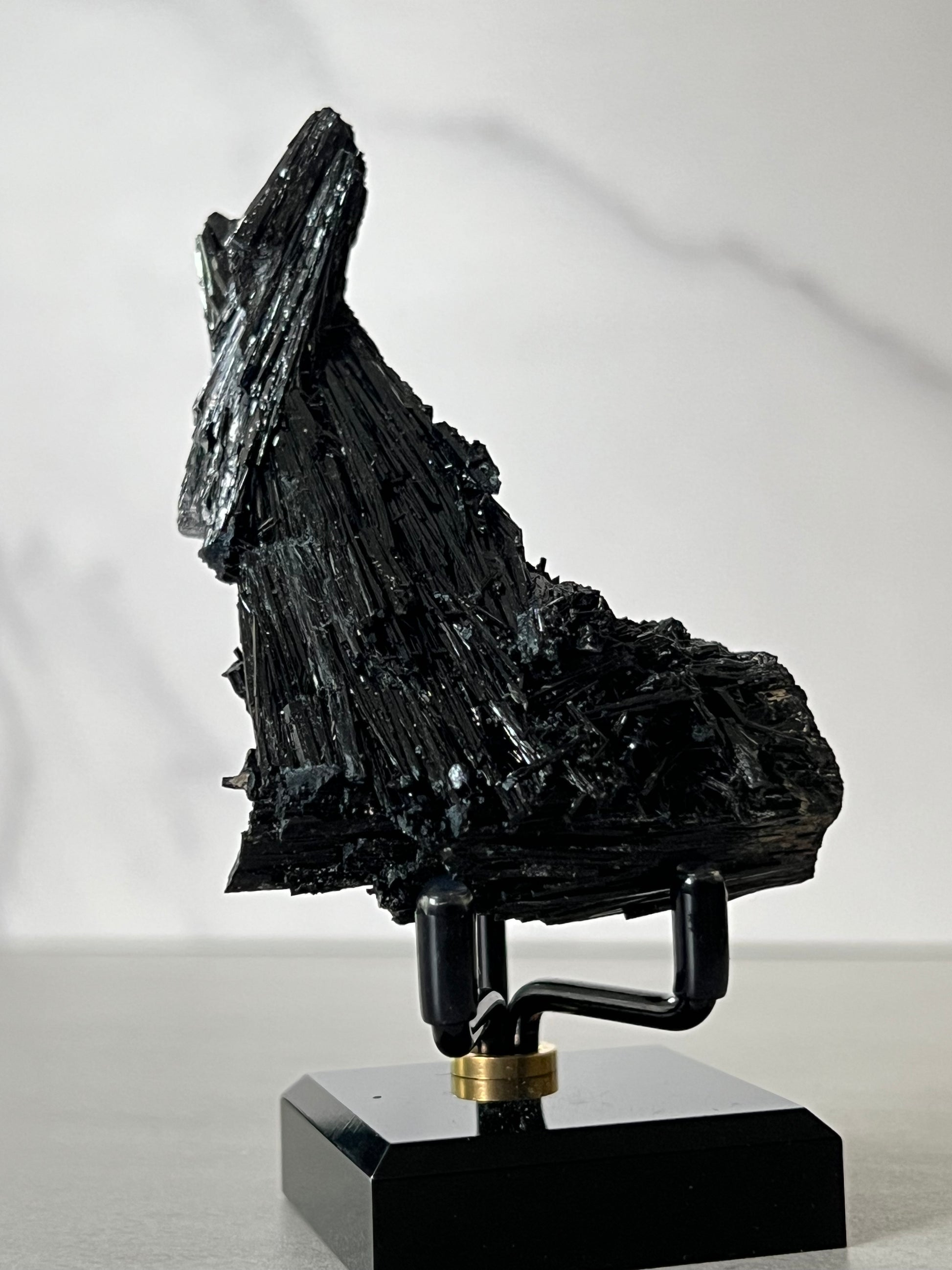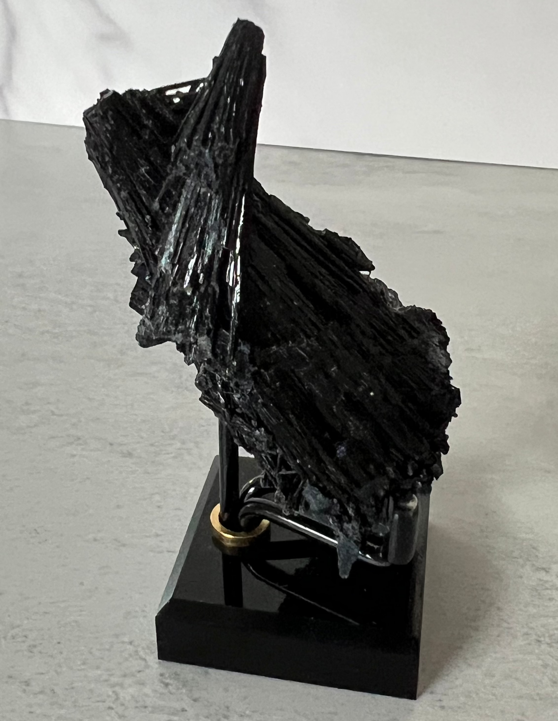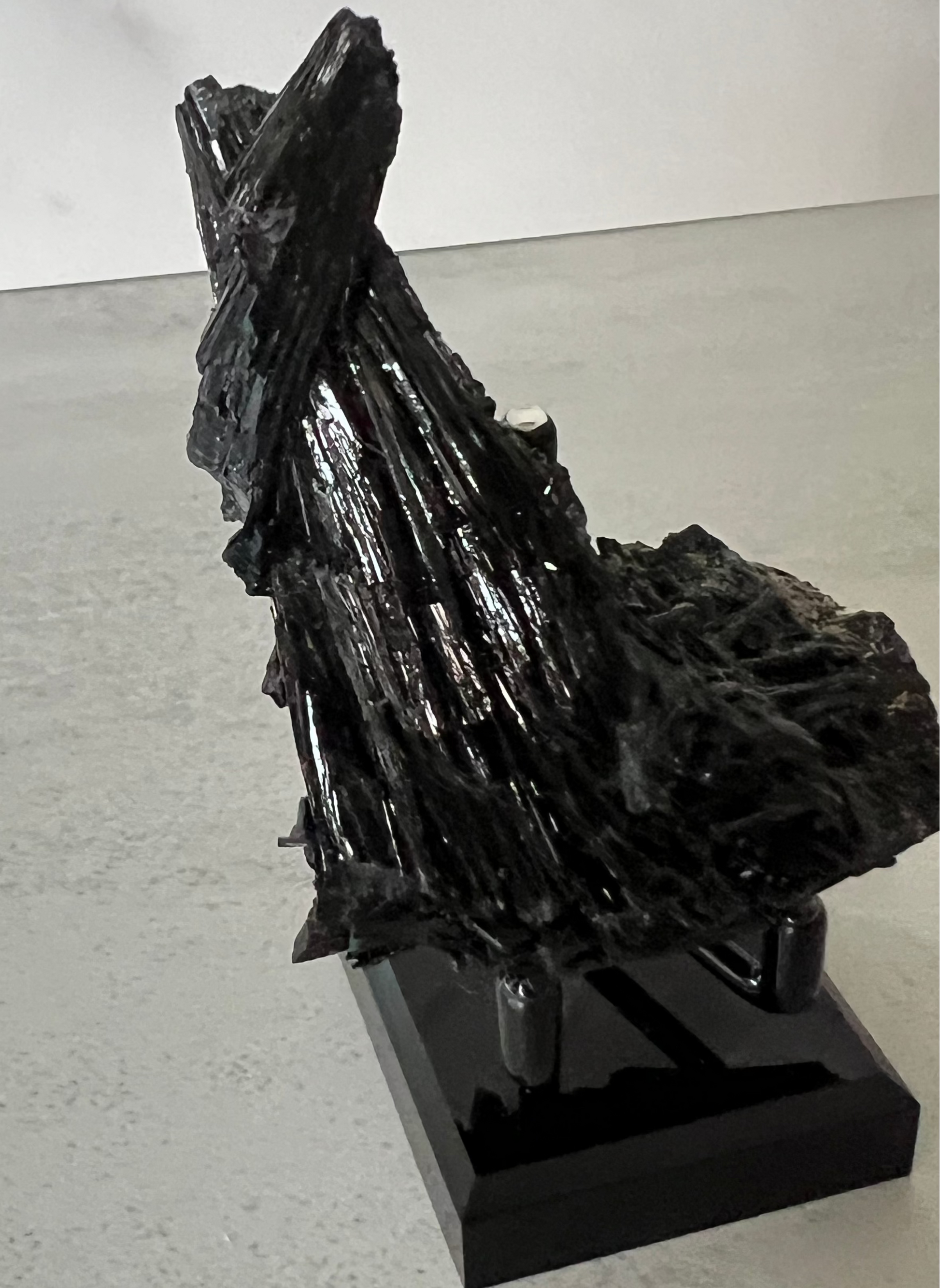 This delicate tourmaline has a unique sheen and form, akin to a raven's wing. It is good to keep in common spaces or in areas that you occupy.