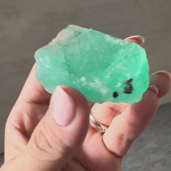 This luminous Green Fluorite specimen radiates with a refreshing aqua-green glow, its natural crystalline structure highlighted by a glassy translucence, bringing a touch of natural elegance and calming energy to any collection.