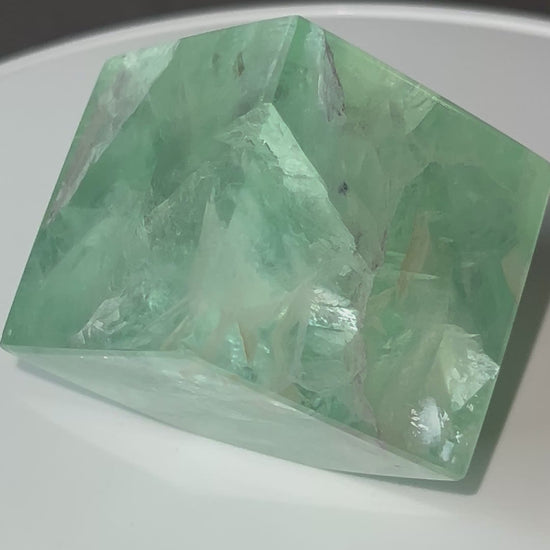 Whether placed on a desk for concentration, on an altar for energetic cleansing, or in your home as a centerpiece of beauty, this minty green fluorite cube offers both elegance and aesthetics.