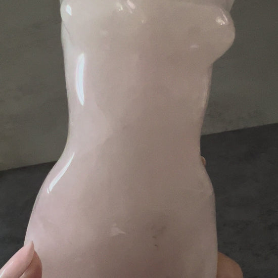 This rose quartz goddess celebrates the natural beauty, strength, and grace of the feminine figure embodying healing energy and self-love.